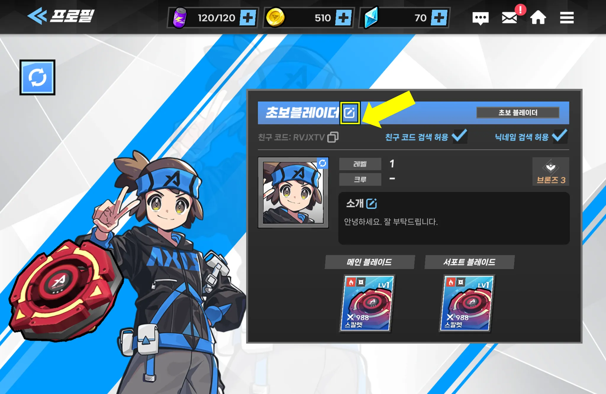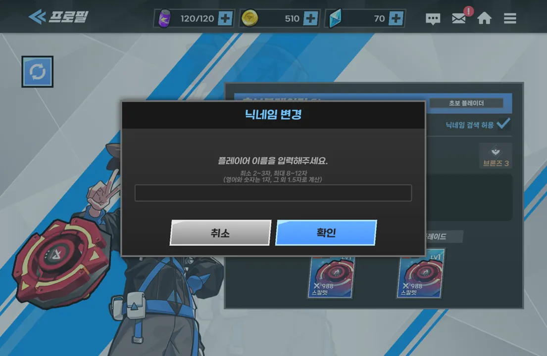 닉네임 변경은 게임 내 화면 우측 상단