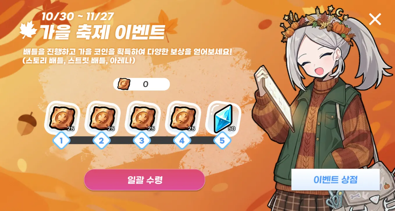 (가을 코인 150개, 11/13 오후 11:59:59 까지)