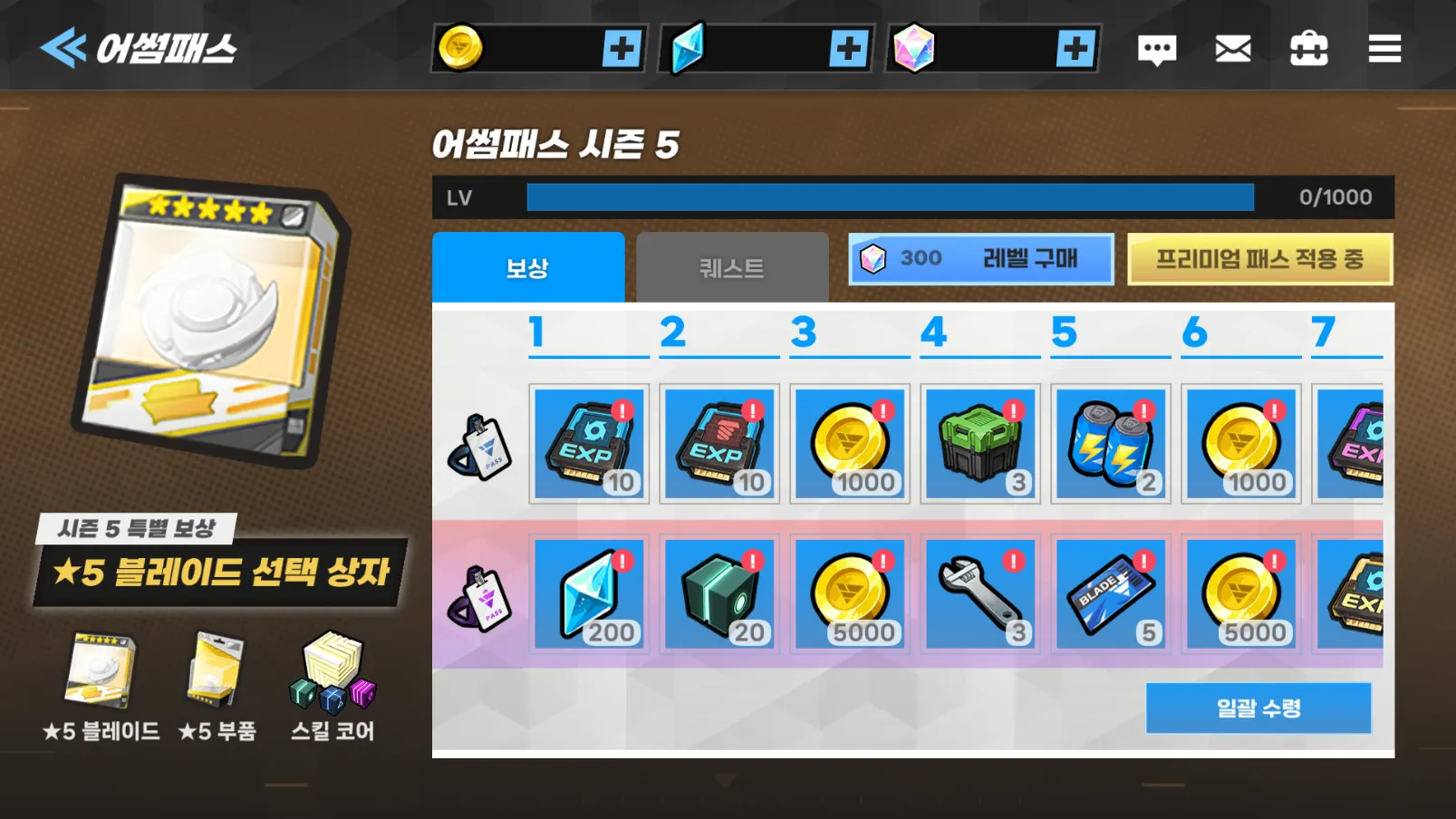 ★5 블레이드 선택 박스 (20레벨 달성시 지급)